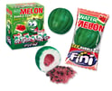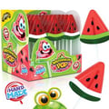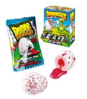 Raikkaan makuinen purukumi, jossa pieni nestemäinen sisus.