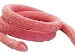 Mansikan makuinen sokeripäällysteinen rullamakeinen.